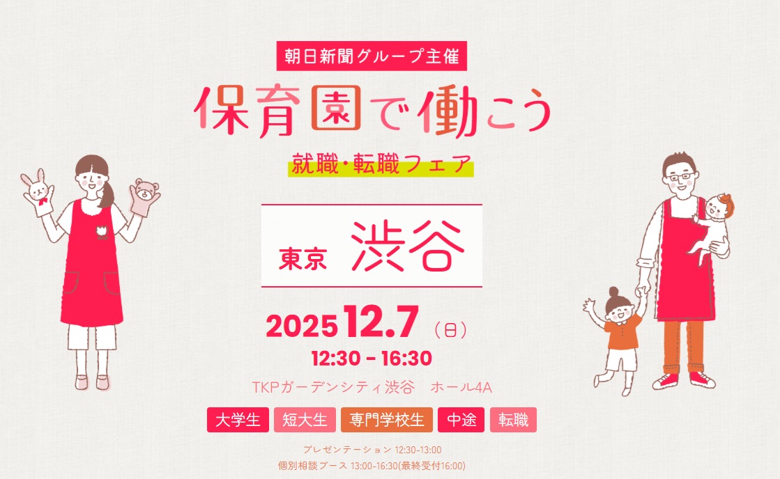 採用🎅\12/7㈰開催/「保育園で働こう! 朝日新聞G主催の保育士就職フェア」に出展します🎅